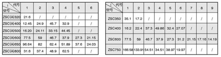 b.ZSC系列承载能力表