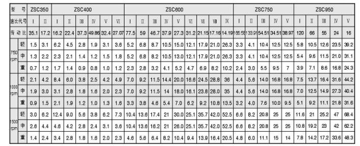 ZSC(A)悬挂式齿轮减速机传动比表