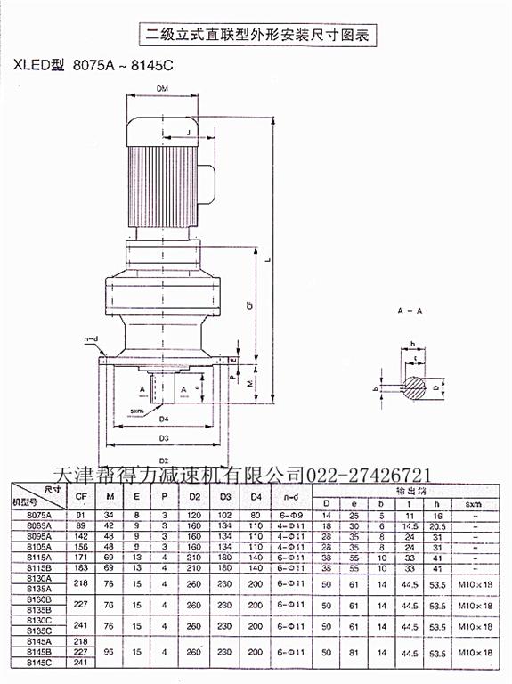 摆线针轮减速机参数-摆线减速机安装-摆线针轮减速机型号-二级立式直联型外型及安装尺寸-天津帮得力减速机有限公司